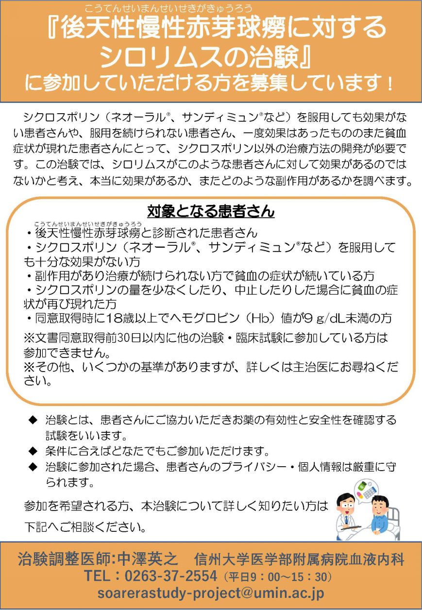 ・後天性慢性赤芽球癆に対する治験が開始しました。[2025/04/07]